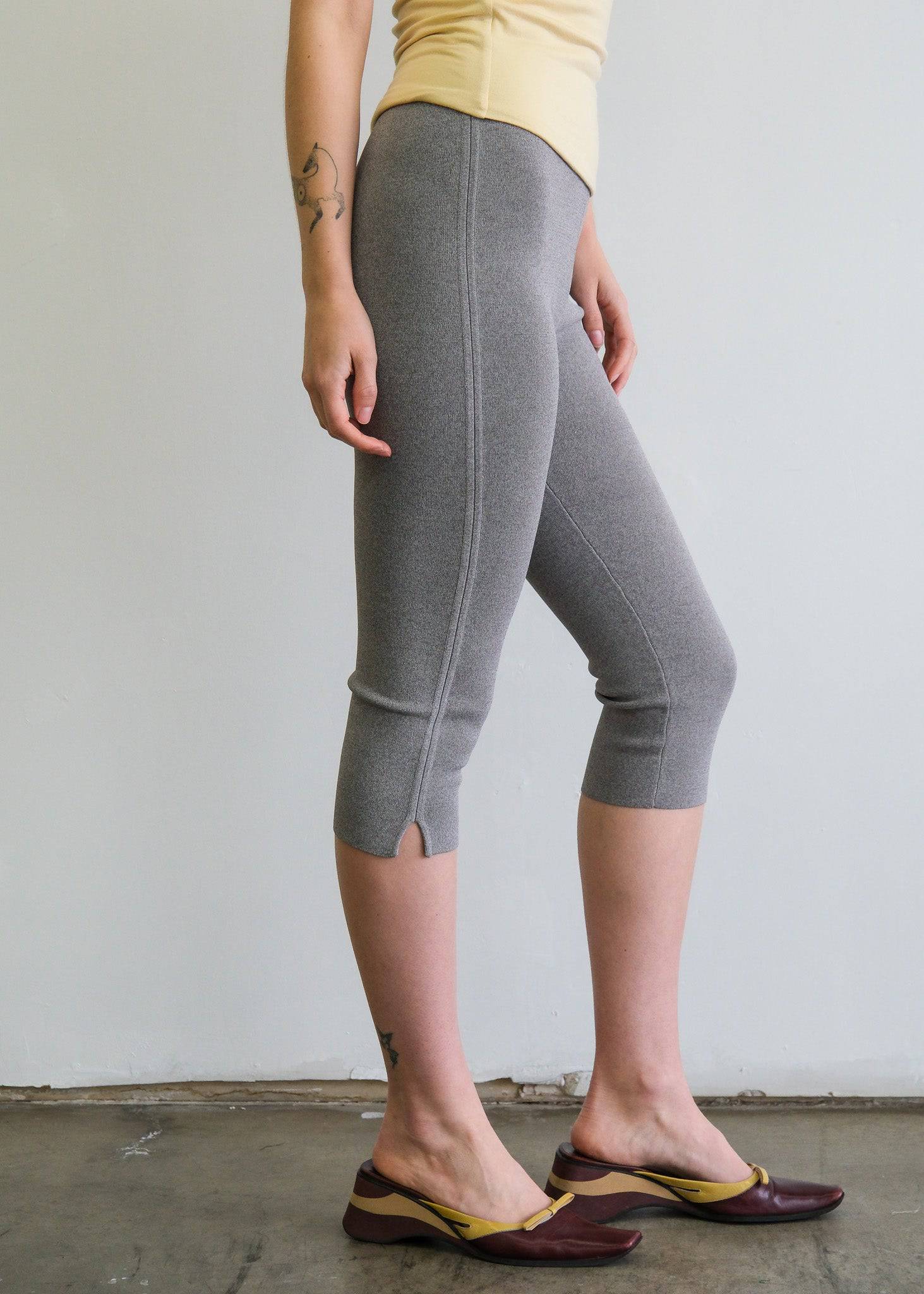 The Maxine–a knitted mid-rise capri featuring a mini side slit and a slight v-shaped elastic waistband.